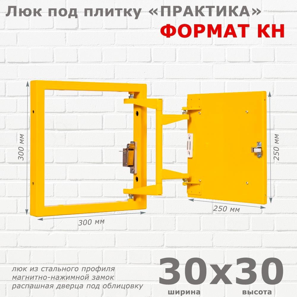 Настоящие профессионалы давно оценили качество стальных люков под плитку от компании Практика. Люк Формат КН 30x30 это проверенная надежность, легкость открытия, долговечность. Магнитно-нажимной замок CombiTOUCH® лучший из множества вариантов защелок. Конструкция петли простая, но практичная и без лишних регулировок. Работает без нареканий. Мастера рекомендуют!
