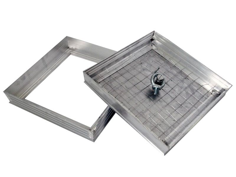 Съемный напольный люк из алюминиевого сплава. Заполняемая крышка.Есть резиновый уплотнитель по контуру. Ручка для подъема в комплекте.
