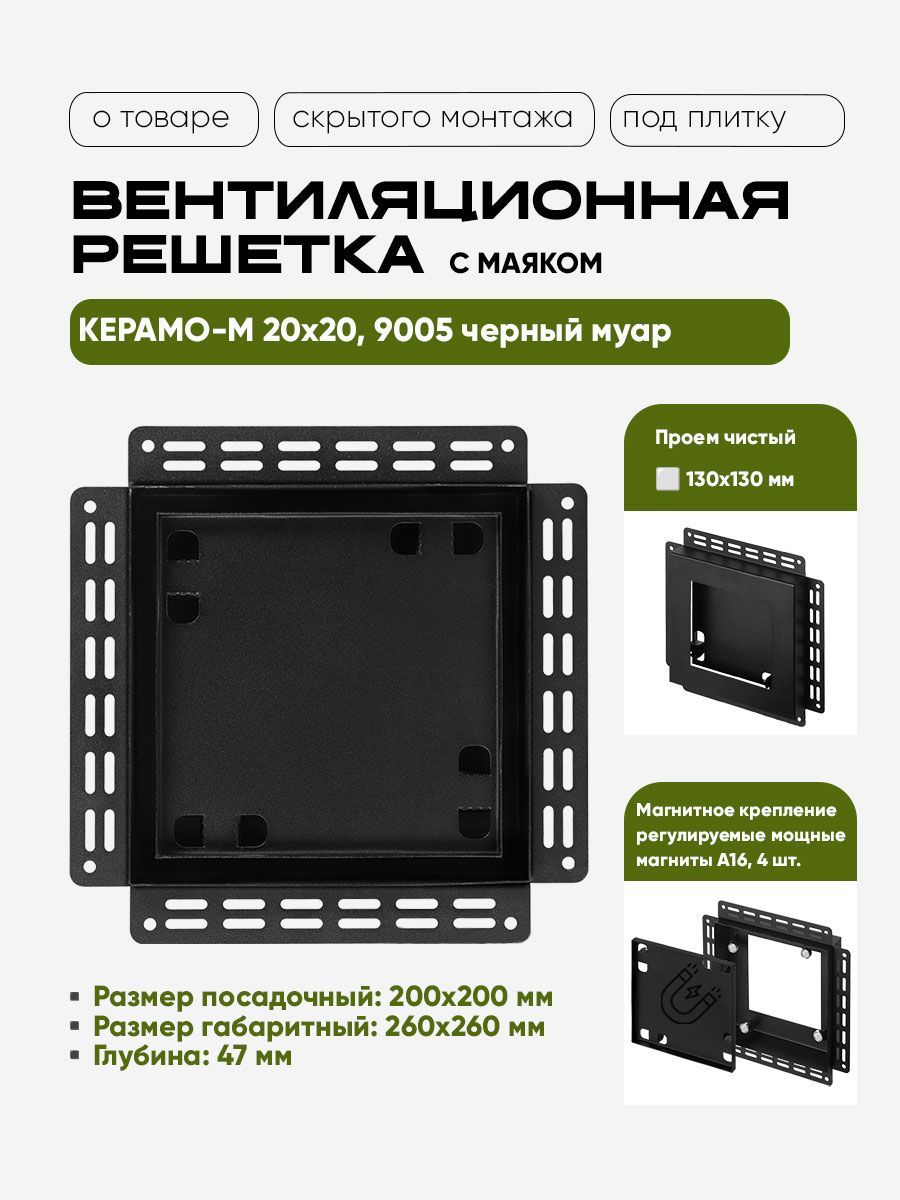 Решетка вентиляционная скрытого монтажа "Вентайл Керамо" под плитку с маяком, монтажный размер 200*200 мм, габаритный размер 260*260 мм.